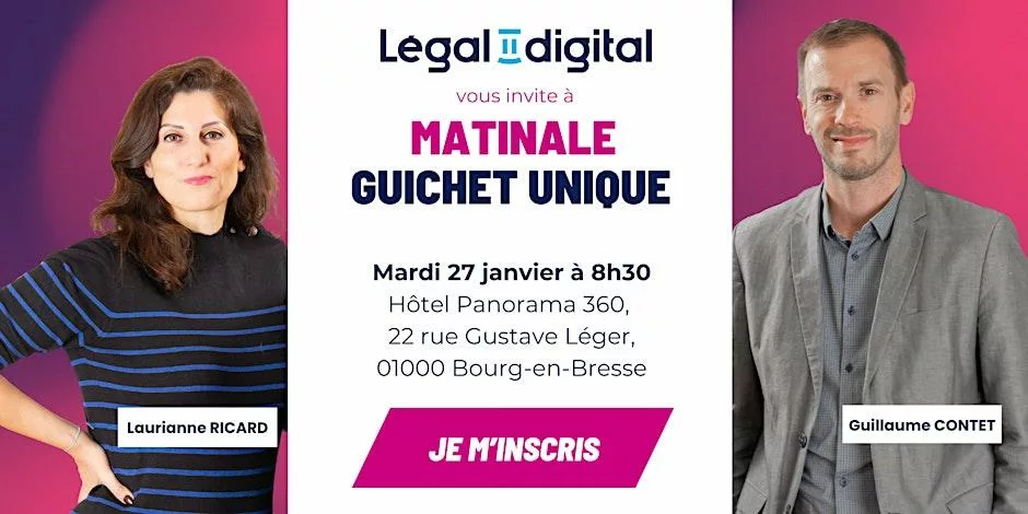 Legal2digital vous invite à son petit-déjeuner autour du Guichet Unique, le mardi 27 janvier 2026 à 8h30.
