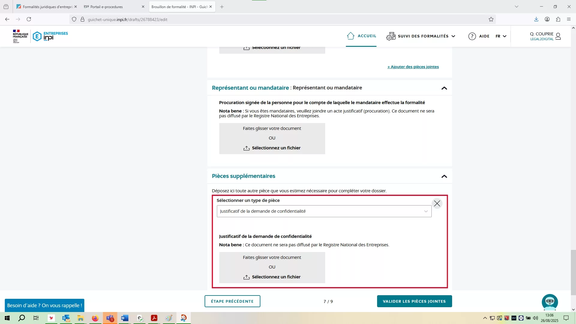 4/ Sélectionnez en plus la pièce « Justification de la demande de confidentialité » dûment remplie, incluant :
