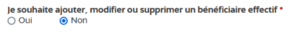 Si vous cochez NON, vous effectuez une mise à jour des données RNE sans demande de modification du RCS.
